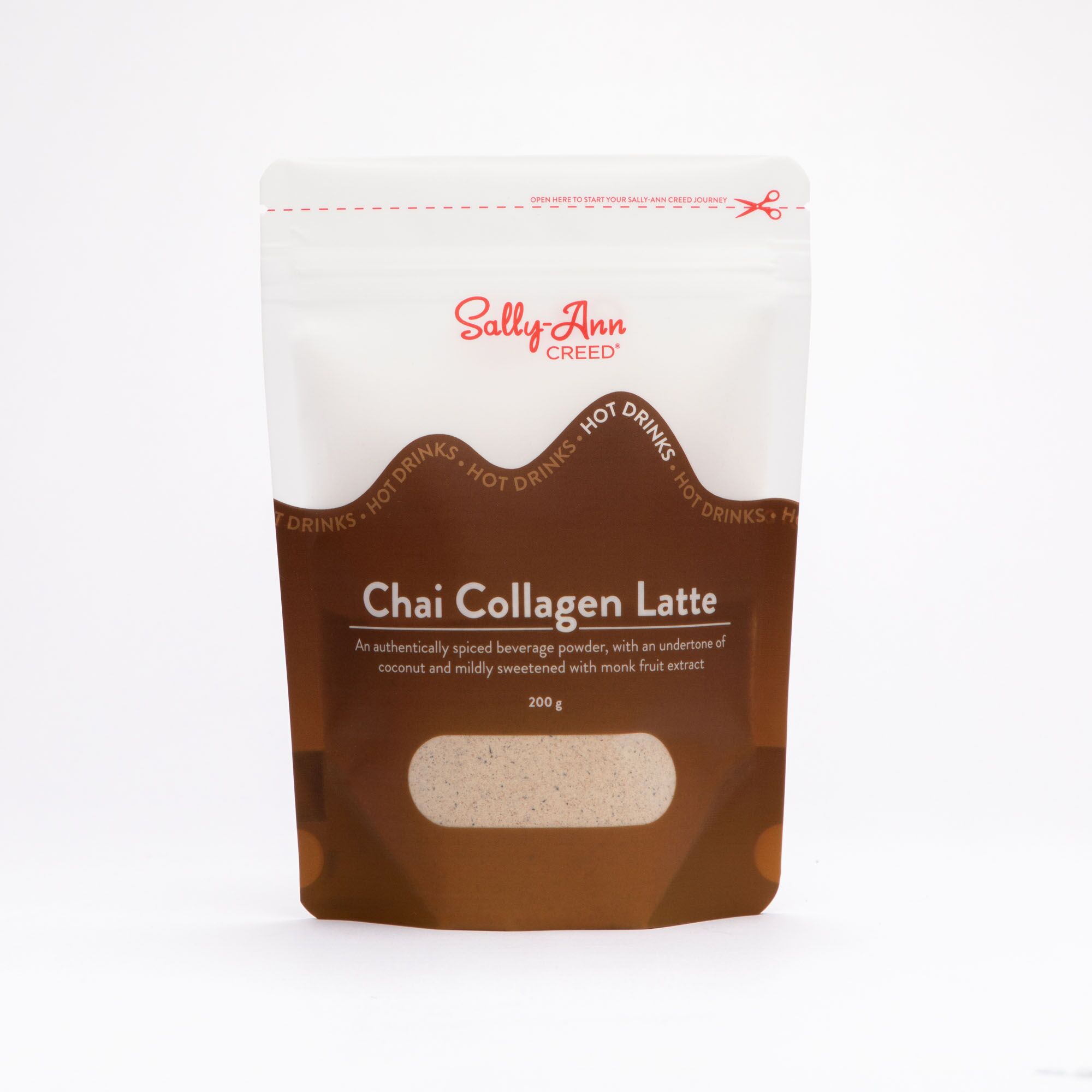 Ingredients: Pure hydrolysed collagen (bovine), inulin, milk powder (rice milk (contains casein) and coconut milk), MCT oil powder, dried spices (cinnamon, cardamon, cloves, ginger), monk fruit extract
