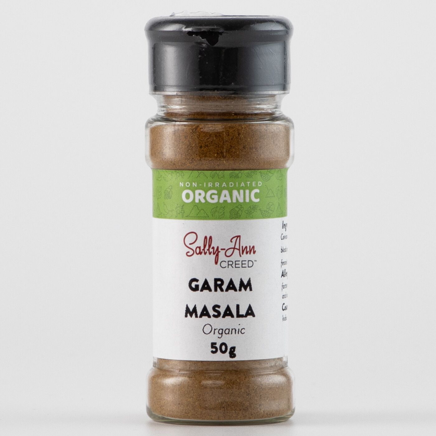 Ingredients (organic blend): Coriander seeds, cinnamon powder, cumin powder, black pepper powder, turmeric powder, bay leaf, fennel powder, whole cloves (all 100% organic)