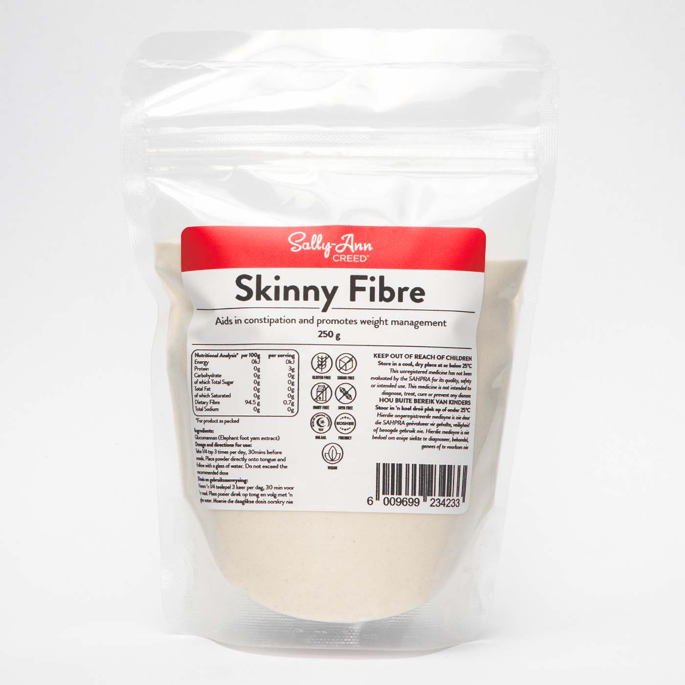 When suffering from constipation, diabetes or high cholesterol, our Sally-Ann Creed® Skinny Fibre is a great supplement to incorporate into your regime. Due to its ability to absorb up to 50 times its weight in water, glucomannan has innate bulking properties, along with a low energy density. This resistant starch provides both insoluble and soluble fibre, meaning it not only assists with constipation, improved digestion, and weight management but it also has the ability to reduce cholesterol levels, improve insulin levels, and normalise blood glucose levels due to its soluble fibre properties.